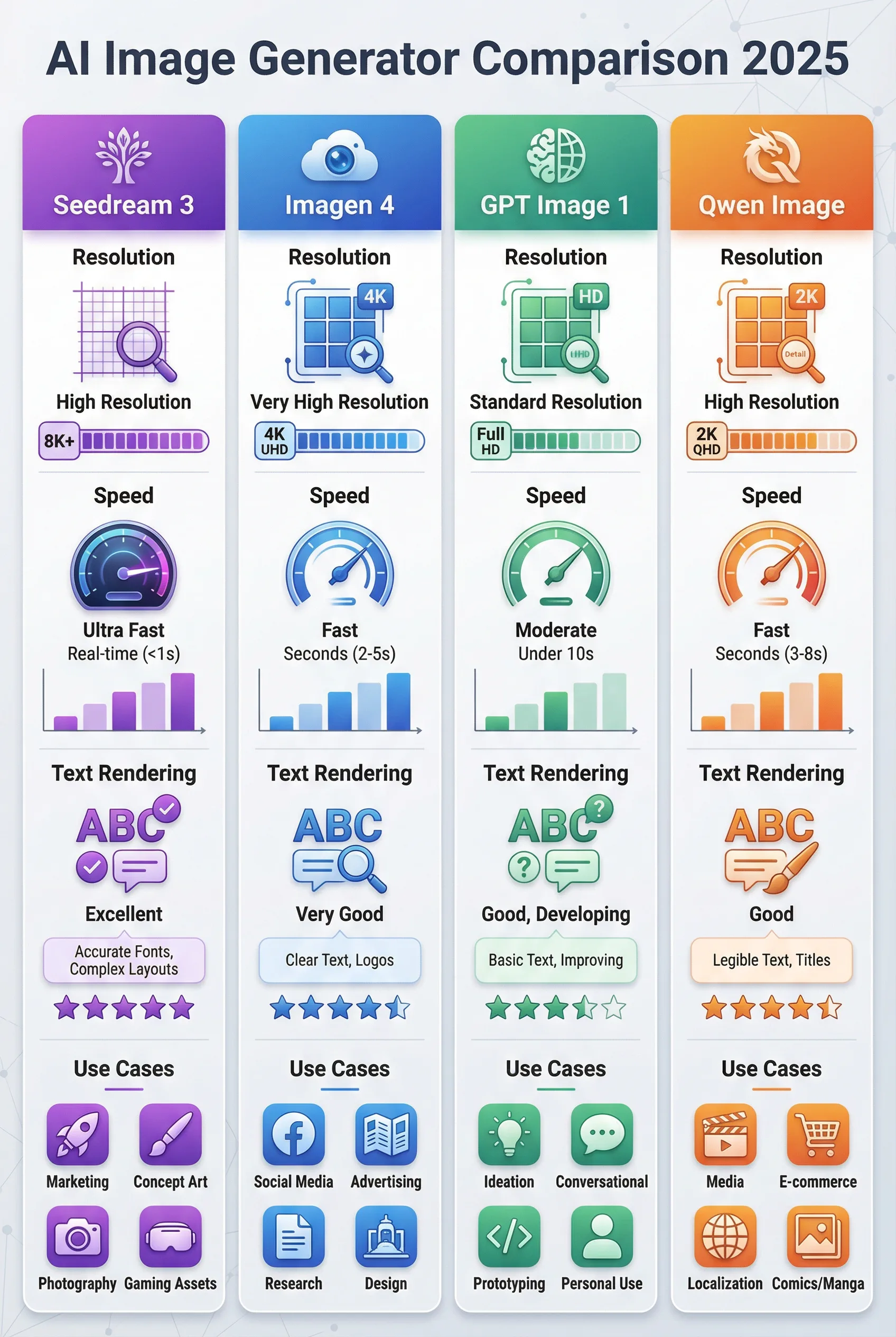 | Caratteristica | Seedream 3 | Imagen 4 (Google) | GPT Image 1 (OpenAI) | Qwen Image (Alibaba) |