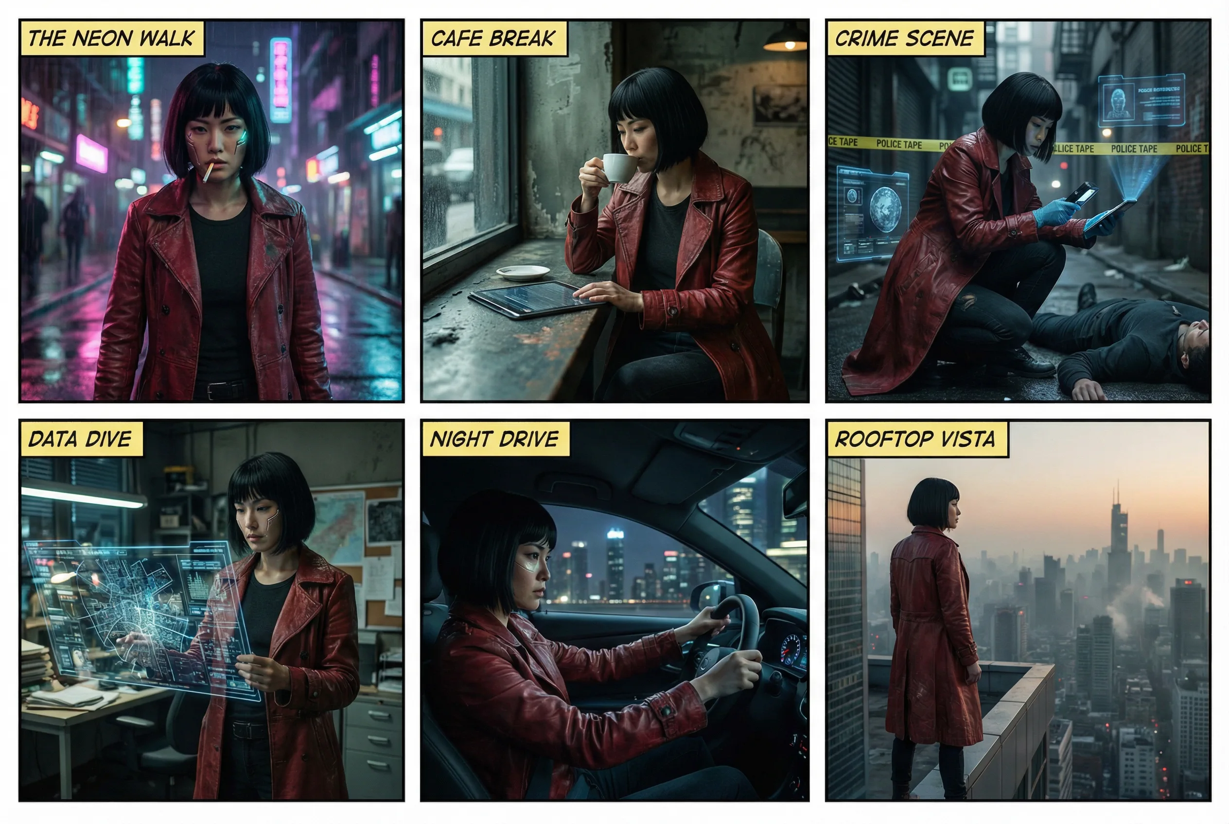 Una delle più grandi frustrazioni per gli artisti IA è stata la coerenza dei personaggi. La capacità di Seedream 4.0 di generare fino a nove immagini coerenti da un singolo prompt è la sua caratteristica killer per qualsiasi lavoro narrativo. Ho testato questo creando uno storyboard per una breve animazione. Il mio prompt includeva una descrizione di "una detective cyberpunk donna con un trench rosso". Seedream ha prodotto una serie di immagini mostrandola in diverse pose e ambienti, il tutto mantenendo i suoi esatti tratti facciali e il suo abbigliamento.