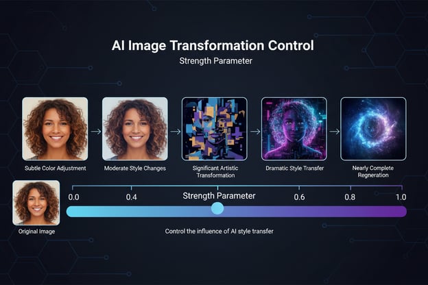 Profesyonel İpucu: Orijinal görüntünüzün özelliklerinden daha fazlasını korumak istediğinizde daha düşük güç değerleriyle (0.3-0.5) başlayın ve daha dramatik sanatsal dönüşümler için 0.6-0.8'e yükseltin.