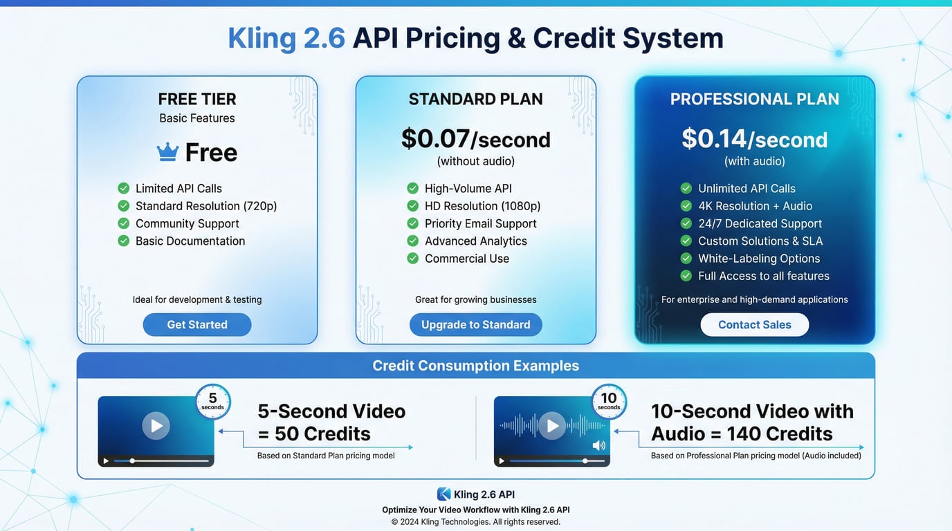 Bunu uygulamalarına entegre etmek isteyenler veya yoğun kullanıcılar için maliyet yapısını anlamak hayati önem taşır. Seedance AI'nın Kling 2.6 sayfasında rekabetçi erişim planlarını inceleyebilirsiniz.